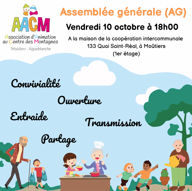 AACM assemblée généralePublié par aacm le 3 octobre 2025 Vendredi 10 octobre 2025 à 18 h Maison de la coopération intercommunale, quai St Réal – Moûtiers