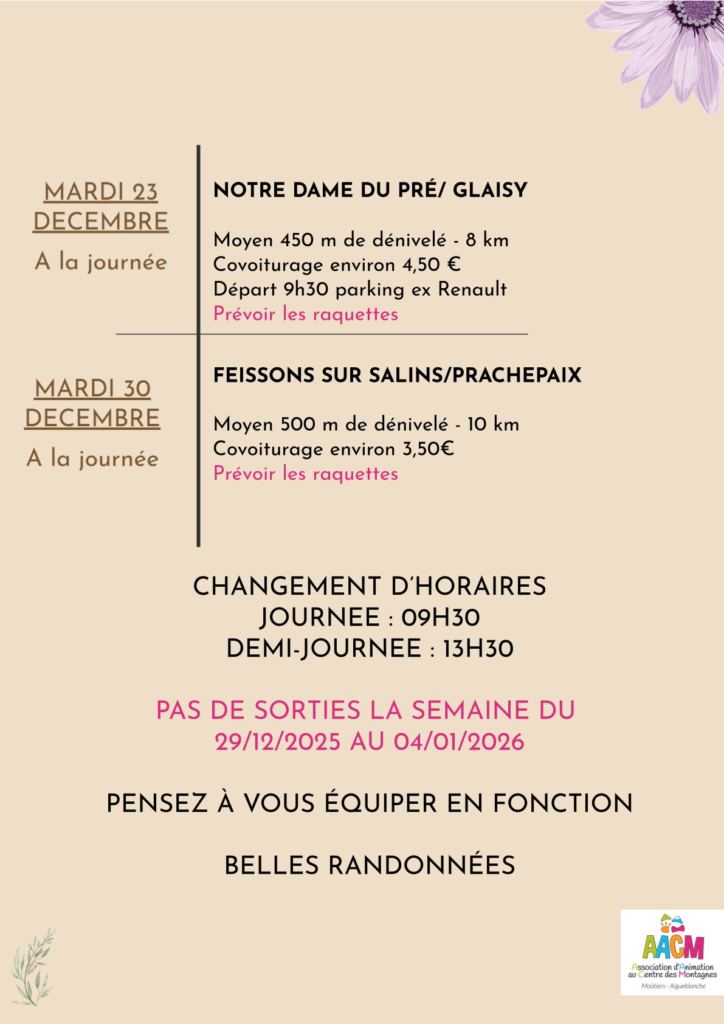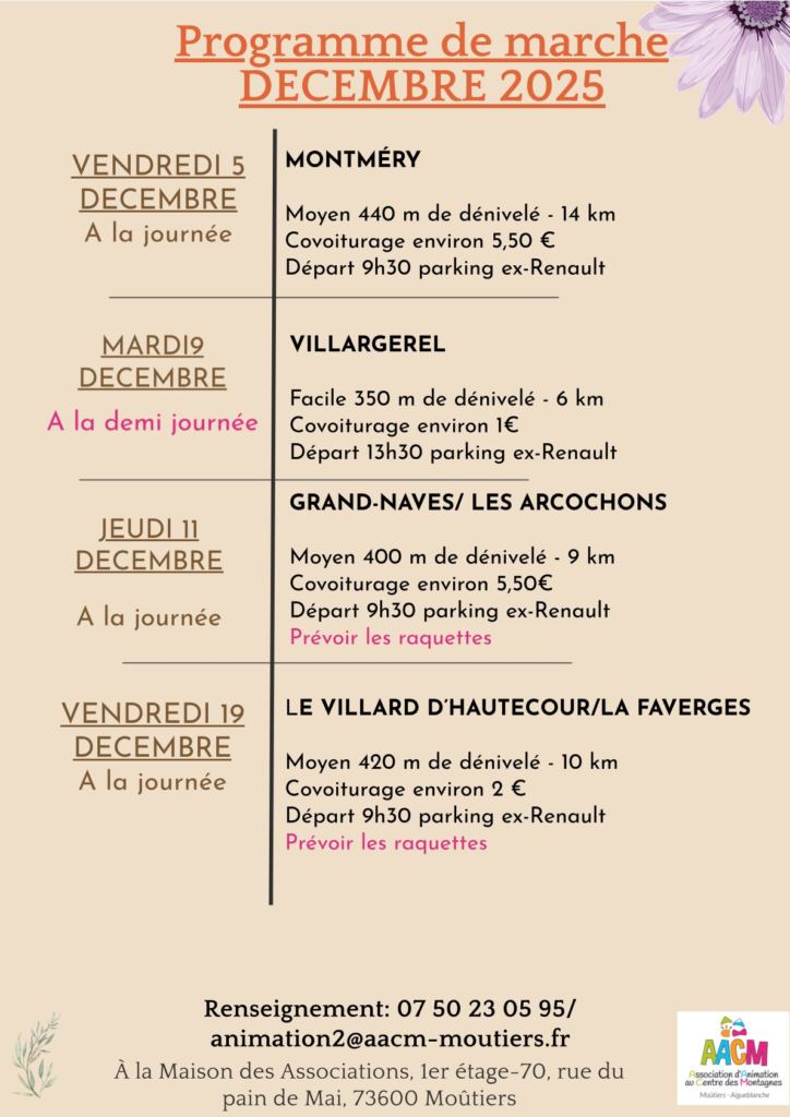 Sorties marche décembre 2025